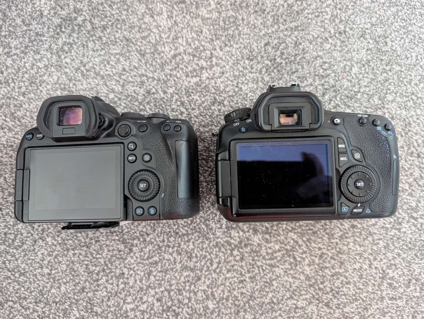A couple of size comparison shots r6 on the left 60d on the right. ![]()
