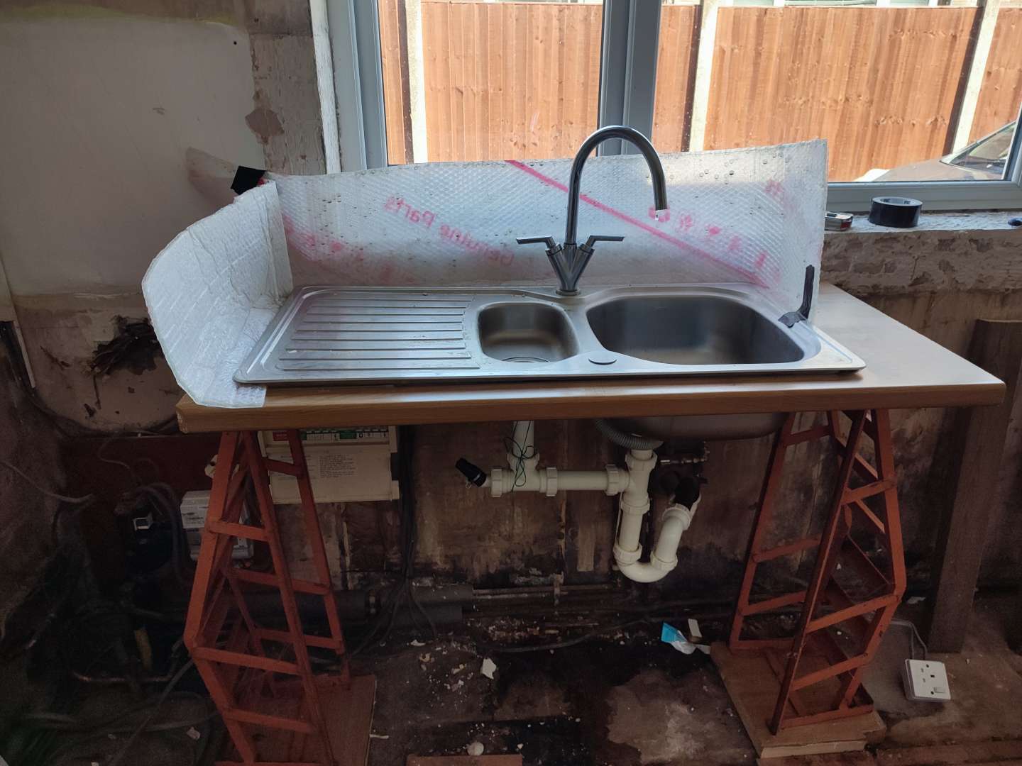 well its been an 'interesting journey' we're months behind and been using a sink balanced on a pair of upended wheel ramps and ive 'fashioned' a bubblewrap splashback to keep us going 😀 (ignore the H&S issues with the socket on the floor, i raised it immediately 🙂 )
