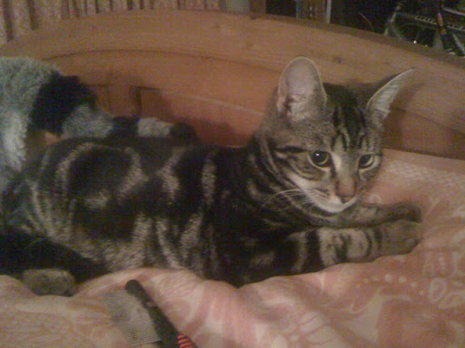 Our neighbours new Kitten (which we don't think they are looking after very well) spent yesterday evening trying to suckle from my tshirt whilst testing his new claws on my stomach. Tis a cute little cat though, not that our adult cat seems to agree...