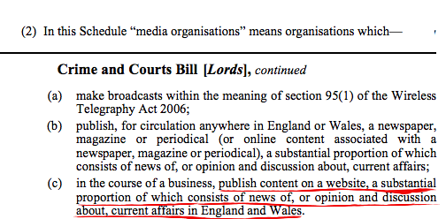 It's about the company publishing it though. As I say, it's defining what a media organisation is in the UK, not where the content they have is held or even how it is distributed (print or web).
