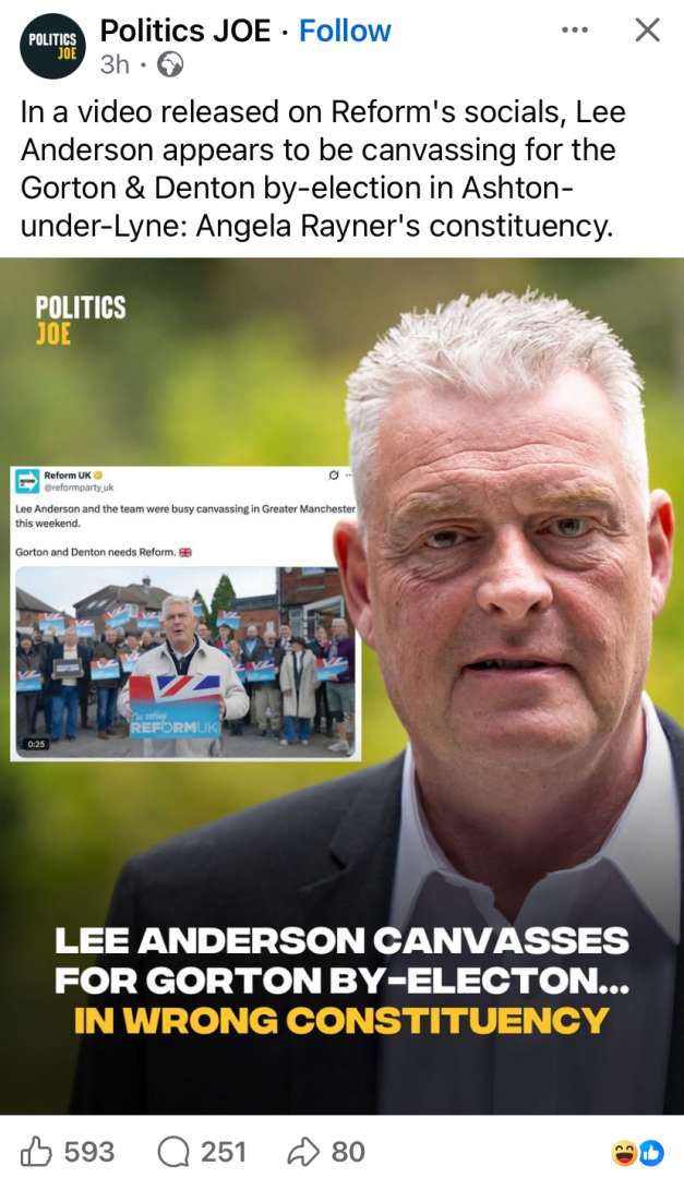 Looks like 50p Lee has got the Reform campaign in Gorton off to a flying start