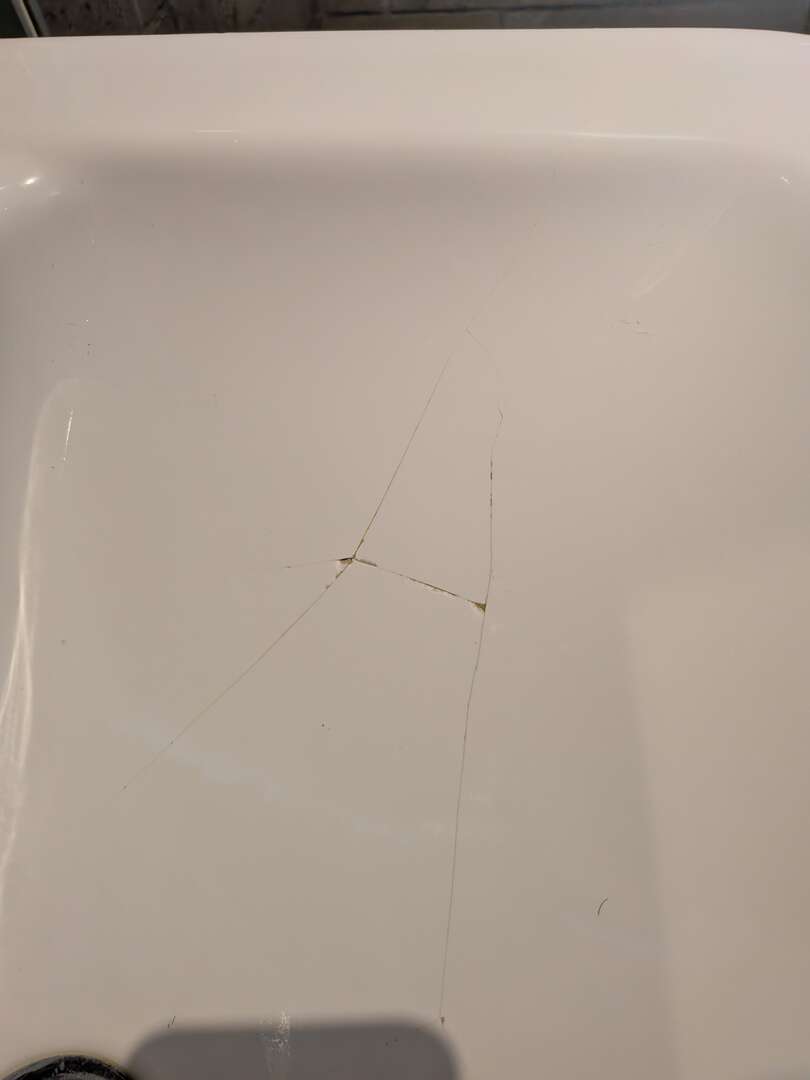 So I have a chip/crack in a bathroom sink. Son managed to knock the shower head out of the holder, as he tried to stop it snakeing around, he knocked a heavy glass ornament off a shelf and onto the sink 🙄