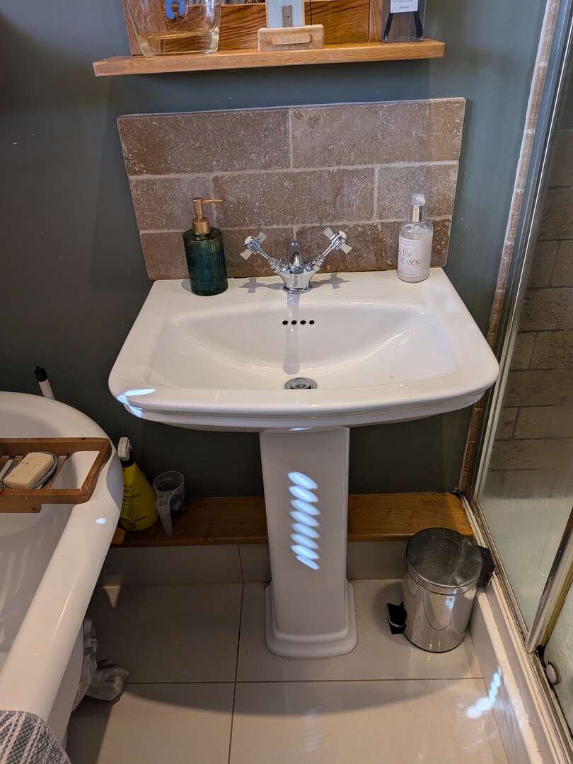 The other thing I'd strongly recommend is a second pair of hands if possible - makes manoeuvring the sink and pedestal around while you mark the correct spot for fixings a lot easier. Oh, and buy a decent quality drill bit if you have to drill through those tiles; nothing worse than cracking a tile to complicate an otherwise straightforward job...