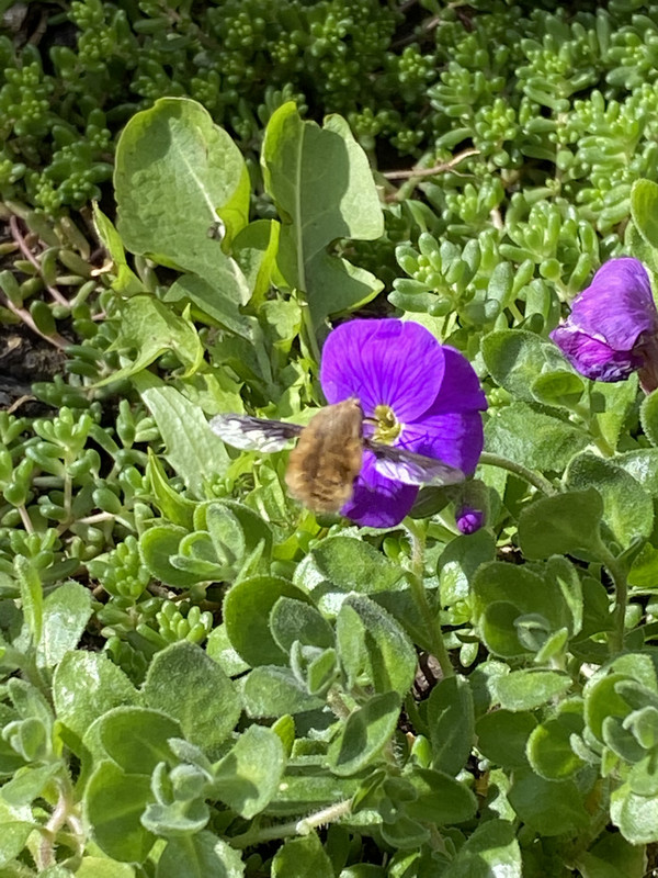 @countzero, yes it is a bee fly. Only ever see them very briefly at this time of year, they make a bloody racket and bomb around all over!!!