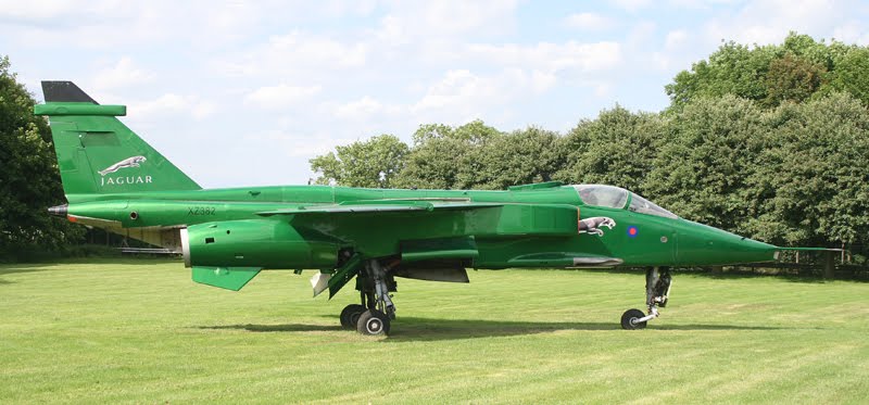 The Jaguar gate guardian outside Bruntingthorpe is a very fetching shade of metallic green. It looks like a giant Matchbox toy.