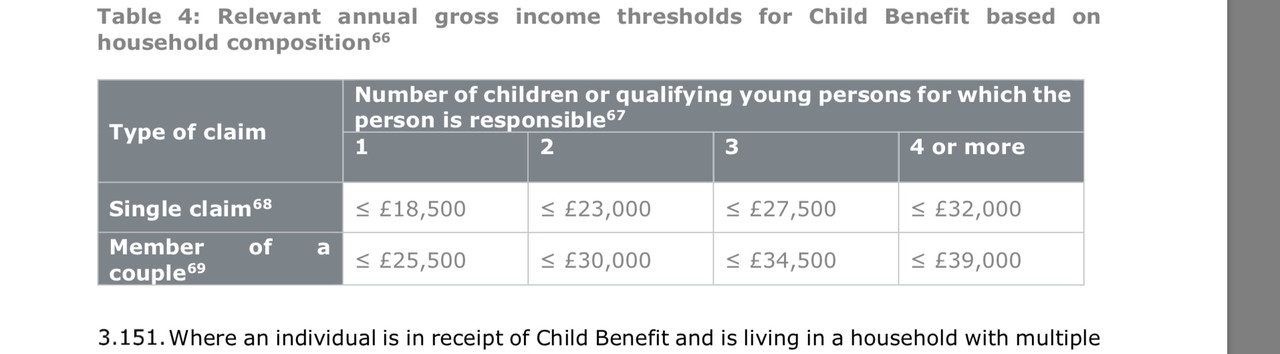 Dickyboy. It's a new scheme from March that opens it up to child benefit. Obviously if you are a higher tax earner you don't qualify for child benefit. This is the means test part. This was the only question I wad asked about income.