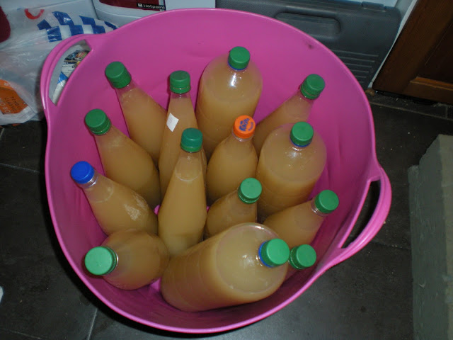 The natural yeast got going pretty quickly and was happily fizzing away, but the smell was not right at all. Possibly there was nothing wrong - I don't know - but not wanting to end up with 20 litres of chain degreaser I chucked in some campden tablets, which slowed it down a bit.