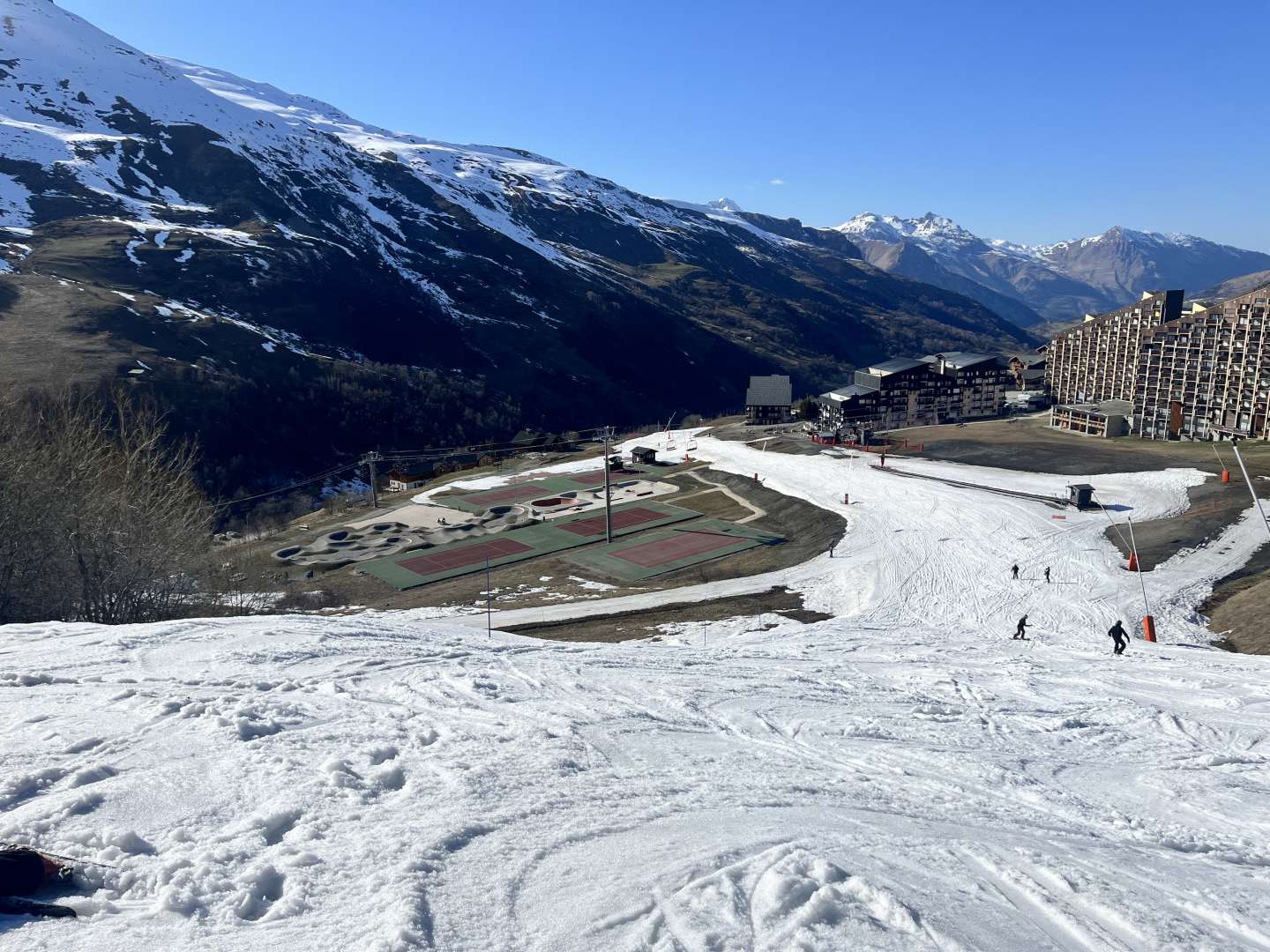 I’m in Les Menuires at the moment. Proper spring conditions but as expected. I don’t think I’ve ever seen the whole of the pump track & skate park uncovered though. Higher up in VT is still great, down in Méribel is a bit sketchy. We were riding right down in to La Tania a couple of days ago too.