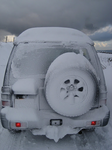 Last night in lieu of a night ride adventure I went for a spin in the Shogun in search of deep drifts. I tried the LRT up to the Craigkelly TV mast above Burntisland. I managed to get stuck up to nearly the headlights and spent a hour digging it out. I wont be trying that again.