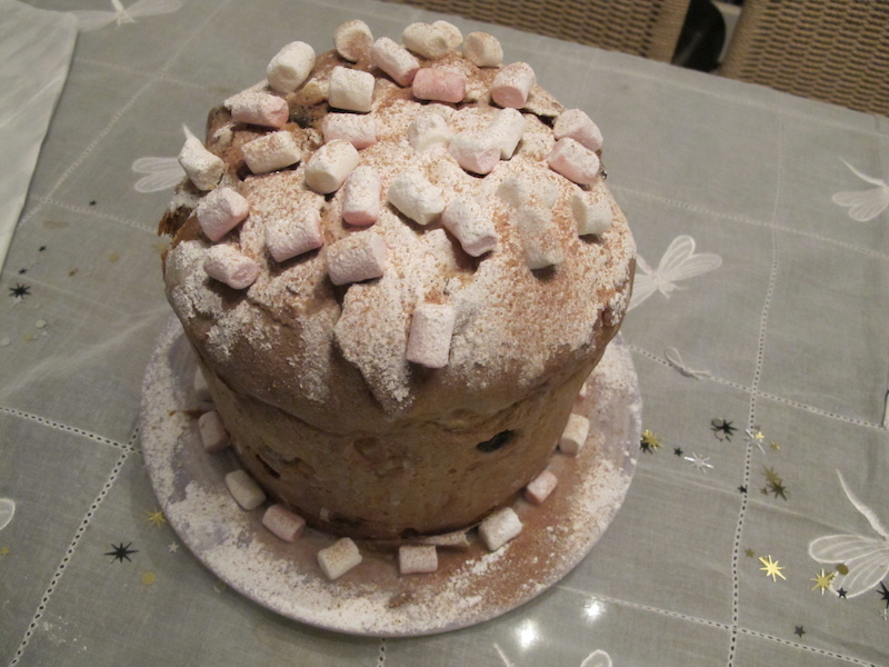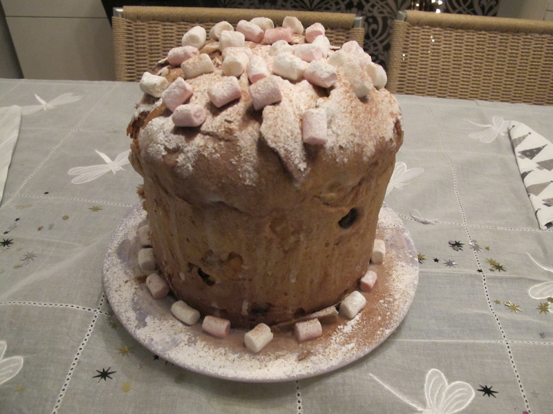 Then gently sieve icing sugar all over the Panettone and then sieve