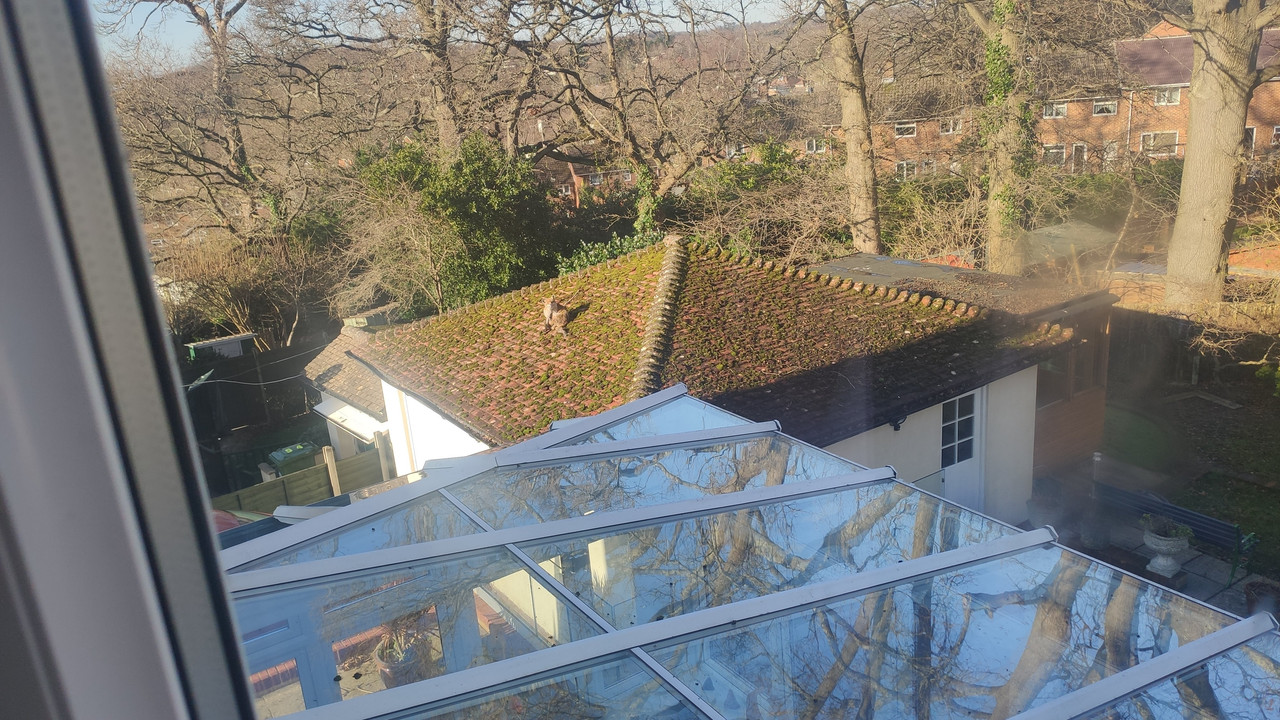 As I first spotted it when sat in the office. I think it jumped up there after the pigeons.