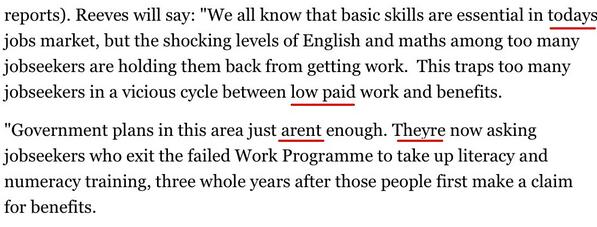 Poor Rachel Reeves MP. Her press release on compulsory literacy tests for the jobless is littered with errors