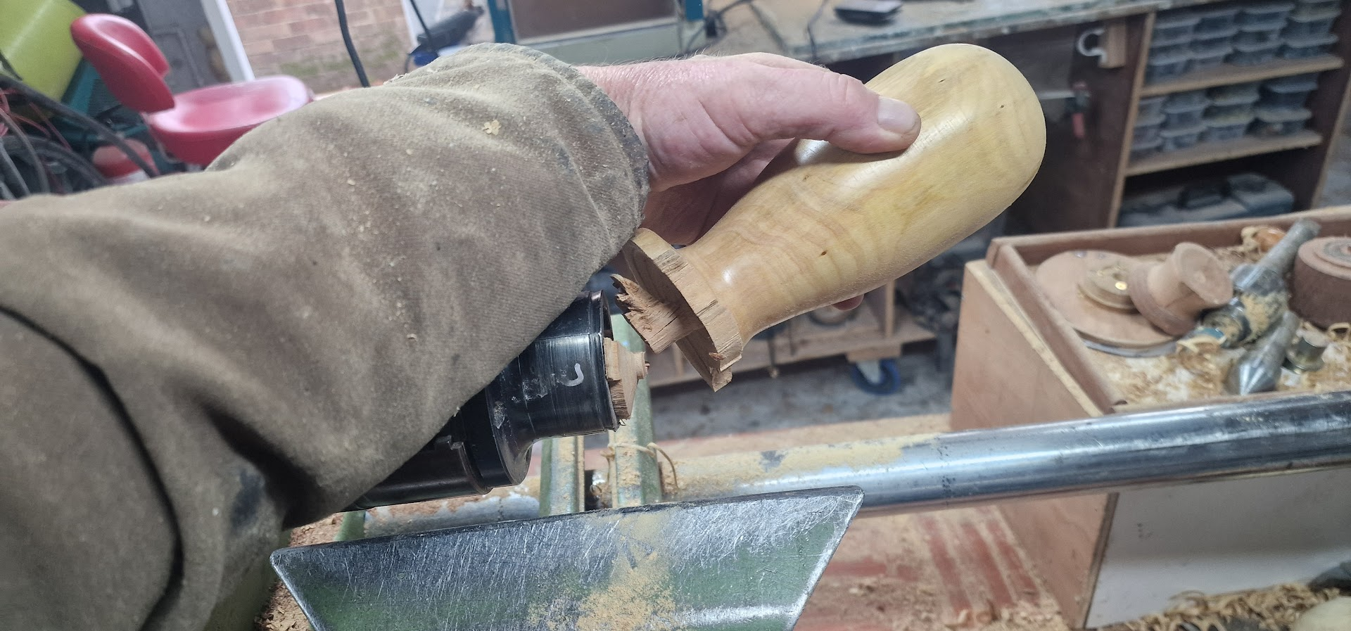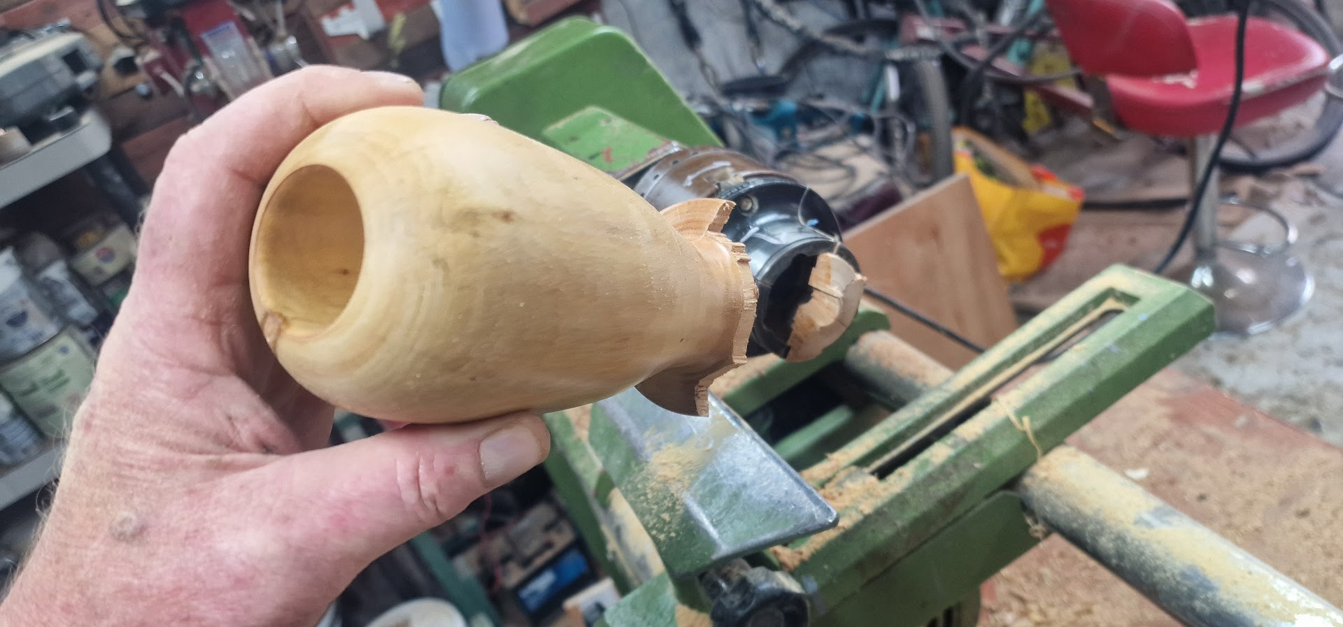 When this happens. After you've turned it perfectly, you sanded it beautifully, you've waxed it, looks amazing. You just remove the base, those last little few cuts, and you get a bloody snag.