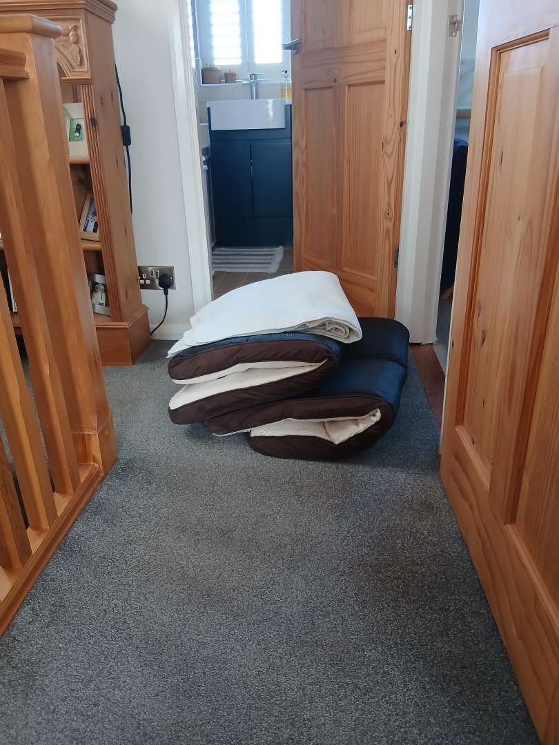 Then, shes hoofed-out the collapsed ones, along with the small duvet that was on top of them, and left them smackbang in the way of the bathroom, airing cupboard and spare bedroom doorways, right at the top of the stairs. In the name of Christ... WHY?