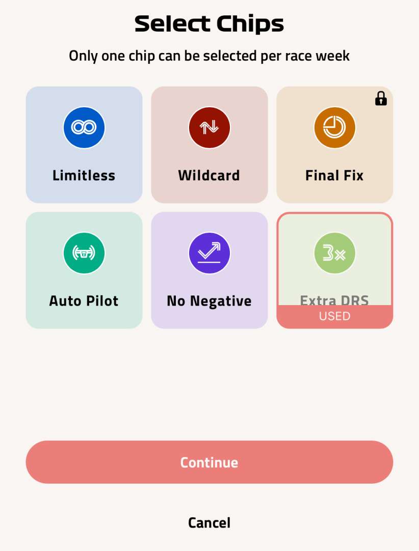 After a couple of years away from Fantasy F1 I thought I'd take another look. Made a team (admittedly a fair chunk of heart in the decision making), but an overly complicated scoring system and to end up with minus points after one race means my interest in following this through for the season is low.