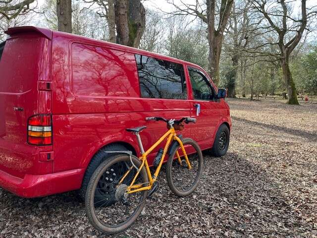 Bed setup was good, opens out to still allow one bike down the side with the bars turned and I just used the Jackery to top up phone and bike computer. One thing I discovered was that I didn't really trust using the ceiling LED lighting in the evening as I had no idea how much it would drain the battery especially given it was cold anyway. That has nudged me towards getting a leisure battery in sooner rather than later so that I can run those with no risk (and presumably get a panel that'll tell me what level of charge I have in both, how much current is being drawn etc.).