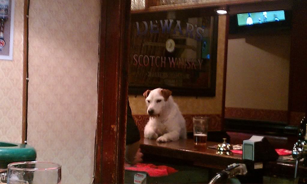 does that dog play pool?. if not, why not! Pub dogs rock! I remember going into a local pub once and there were more dogs than people! and the clientele were just talking about dogs.