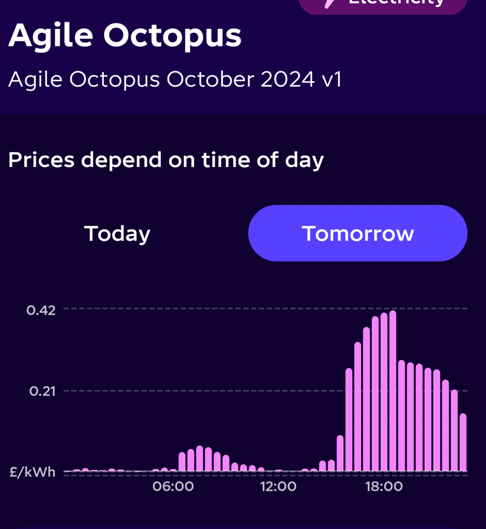 Just had my email from Octopus and they're only dropping my IOG rate from 7 to 5.8p - guess the Tangerine Toddler has stopped the rumoured 3.5p cut. On the upside they mention possibly increasing the export tarrif but expect that will only happen if higher wholesale prices are sustained so it's not necessarily good news.