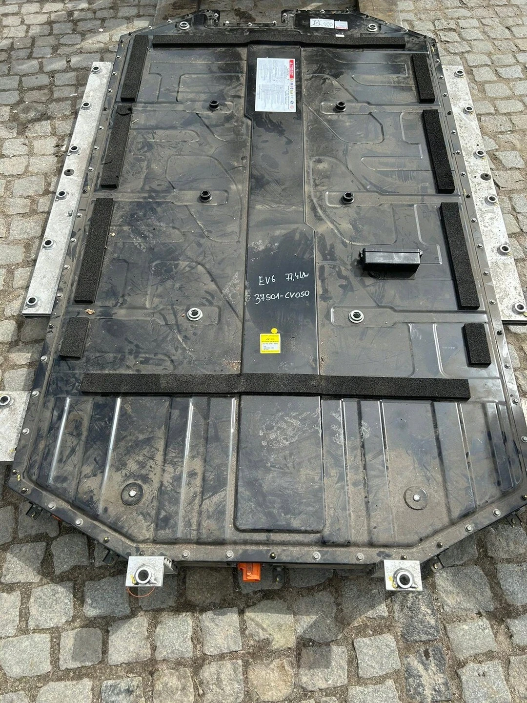 This is a complete Kia EV6 77.4kWh battery listed on eBay (for £3.5k) alongside all the other car parts for everything under the sun. Looks like it's just dropped out from underneath, you can see the fixings around the edge.