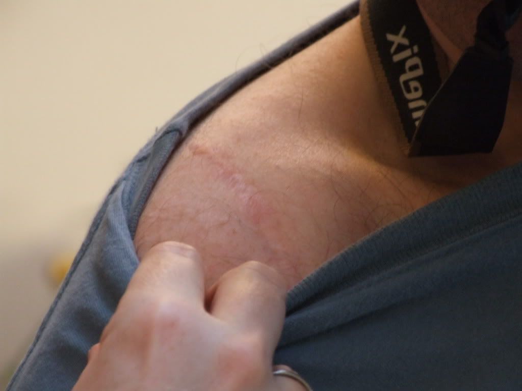 Would it be in gippingly poor taste to post a photo of J's amputated arm on here. It's not an injury as such but it is fairly impressive and (I think) really intersting?