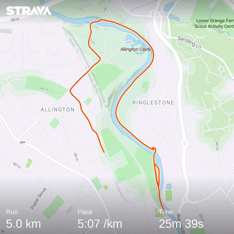 Well in the absence of a parkrun on Saturday, went for a 5k run this afternoon, started out with an aim of 5:20 /km or better pace, was feeling comfortable slightly below that and ended up running a pb 5k of 25:39! 😁