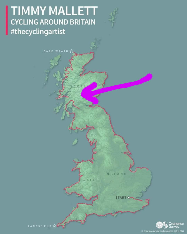 I never knew about his coast ride,good effort.He already does a lot of painting up our way (Tayside),would've been good to pedal along for a bit and hear some Mallet cycling chat 😀