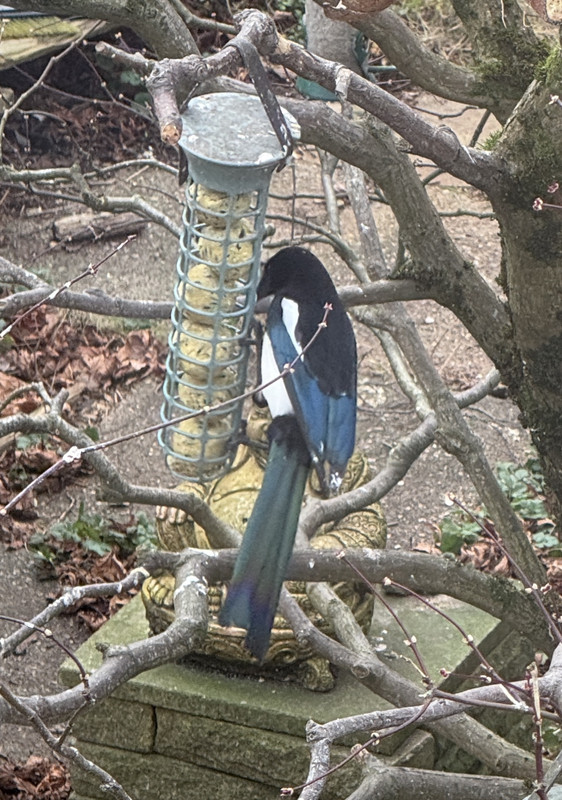Finally managed to get a couple of photos of one of the magpies that visit - they’re very wary, I’ve tried getting a photo by just poking the phone above the bottom of the window, but they spot any movement and they’re off!