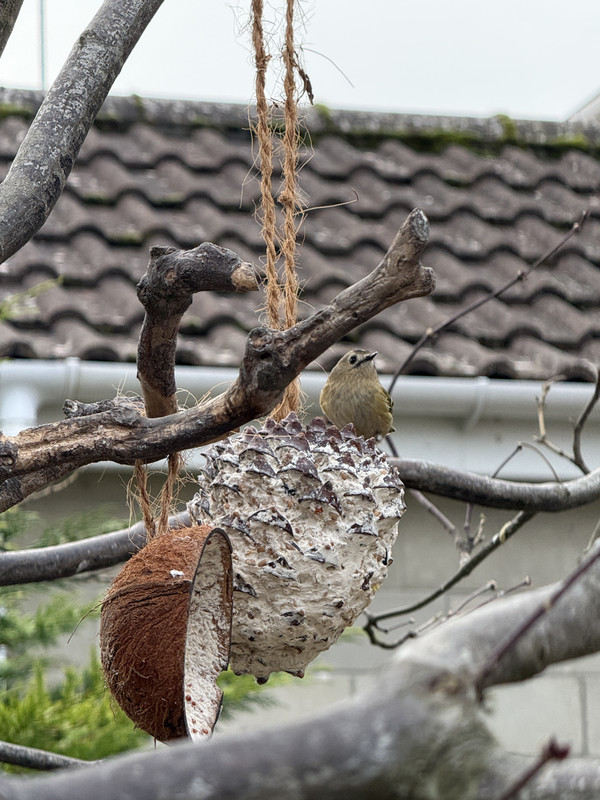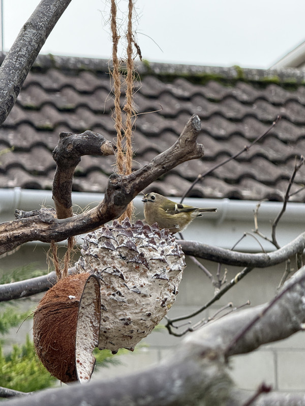 Just to add to the photos of the Goldcrest above, I checked my bird references, and it appears to be a female, the males have a deep orange stripe down the middle of the yellow stripe, which the males raise during the mating season to show it off. I’ll be paying close attention with the glasses from now on.