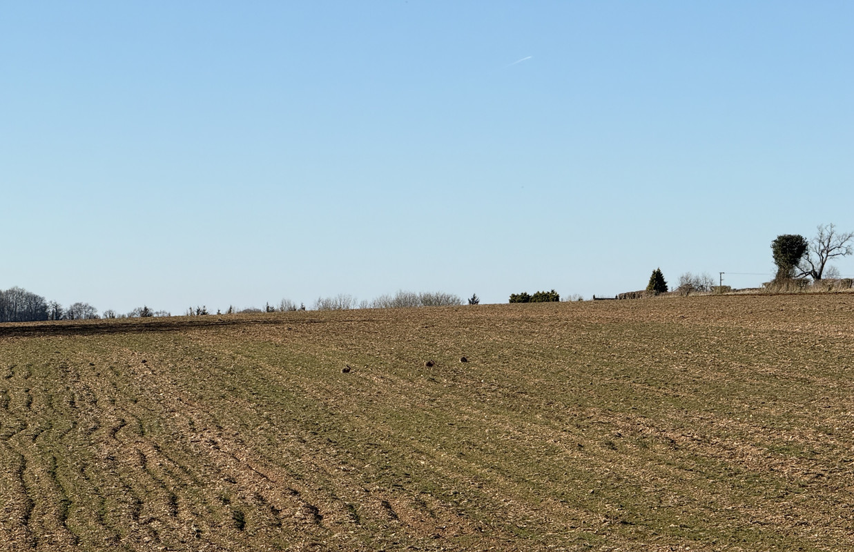 Three hares enjoying the early spring sunshine. There were eleven in the field that I could see. There were a couple boxing briefly.