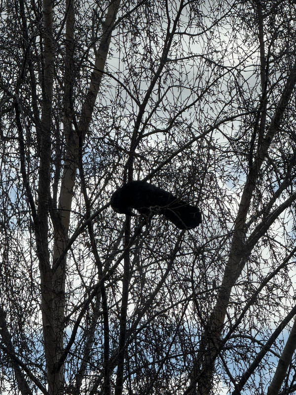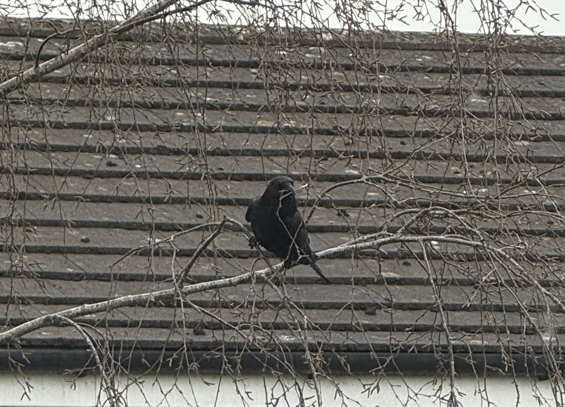 A bit dark, but the sky’s a bit bright, you can tell nesting season has started, the local pair of carrion crows are pillaging my silver birch for twigs to build with.