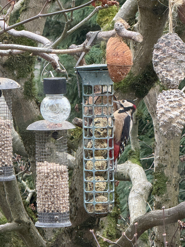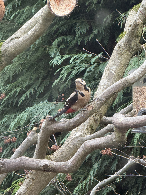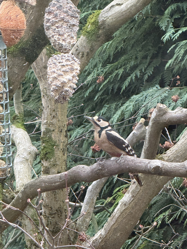 Went out to the kitchen this afternoon, looked out to see if there were any visitors to the feeders, and lo, and indeed behold, this was checking out what was on the menu…