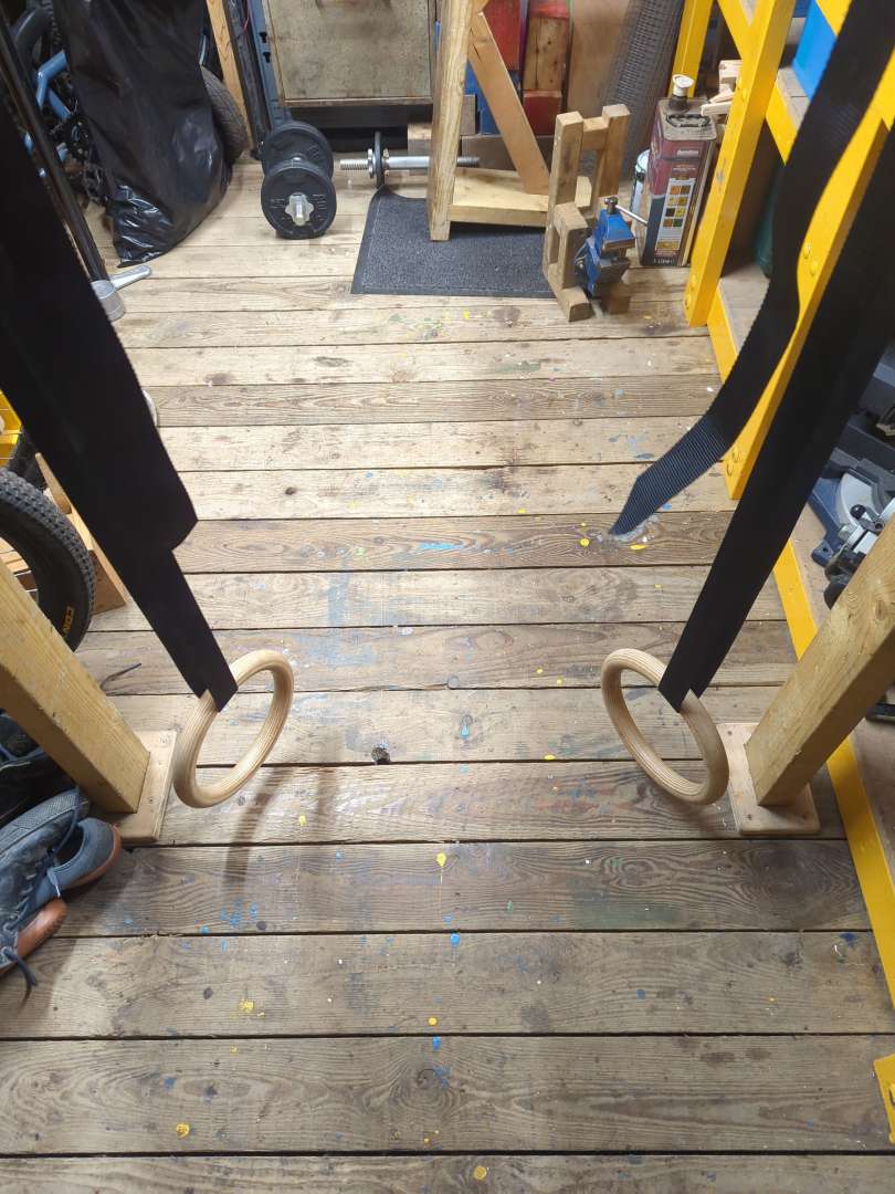 Little production line making shelf supports from reclaimed pallet wood, for more storage in the shed.