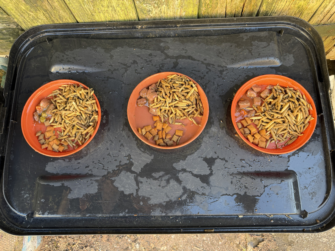Daily food dishes for the hedgehogs. They’ll be empty next morning. 🦔