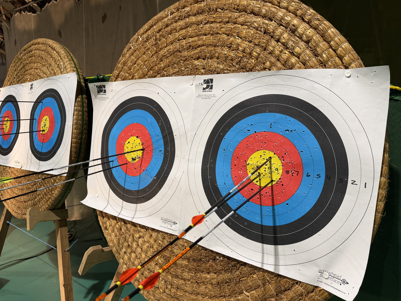 First day back shooting indoors after the festivities, and I thought this was a fairly good group, then I noticed something odd about one of the arrows…