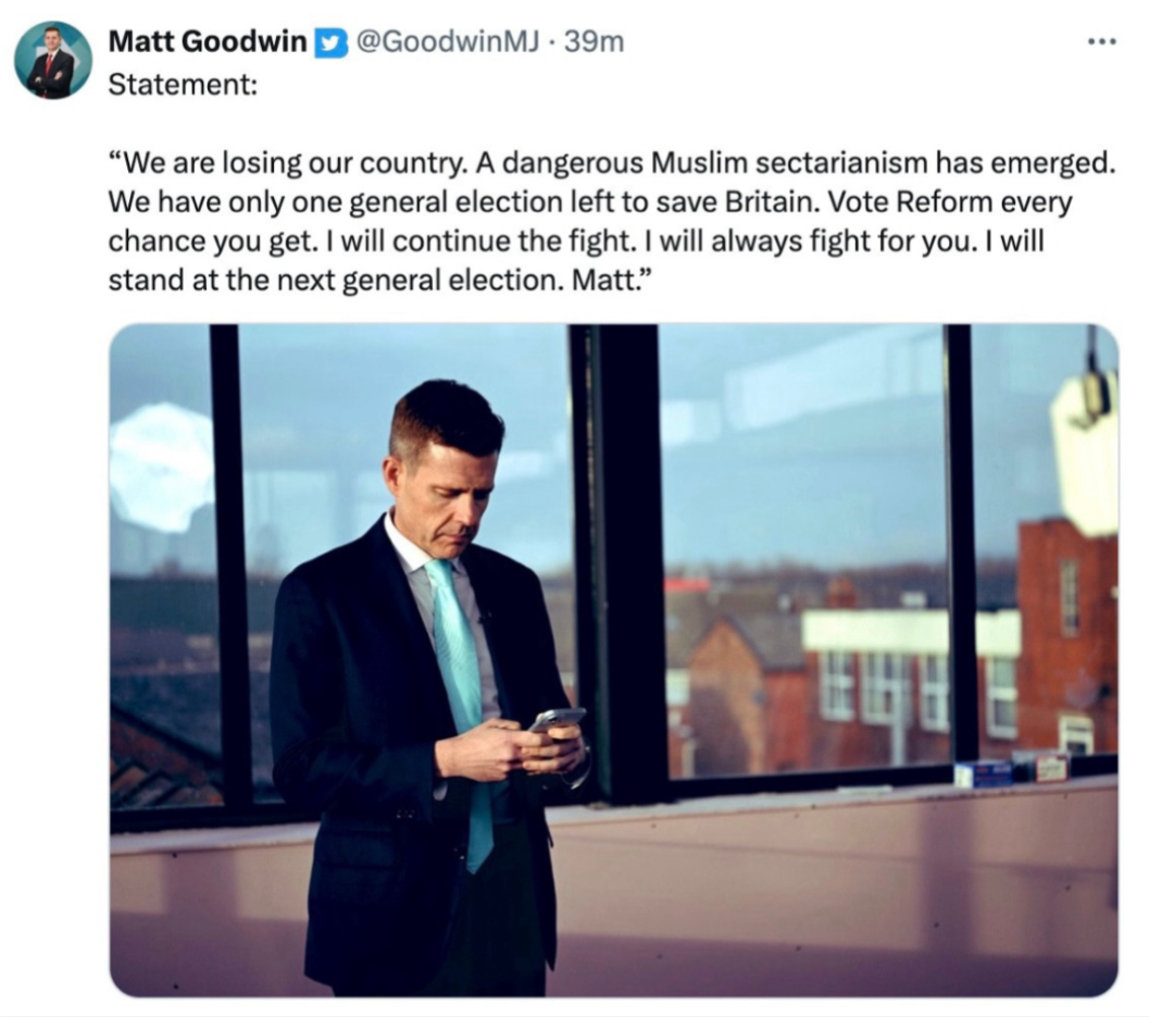 Goodwin would i think happily lose if he got to blame it on muslims/ greens/ woke