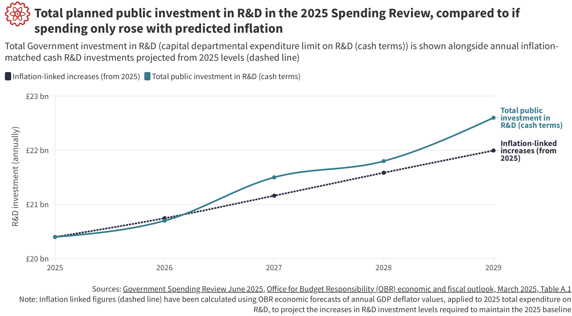 Over the Spending Review period, 2026/27 to 2029/30, investment in R&D will be £86 billion overall, rising from £20.4 billion in 2025/26 to £22.6 billion in 2029/30.