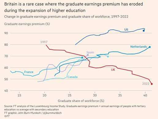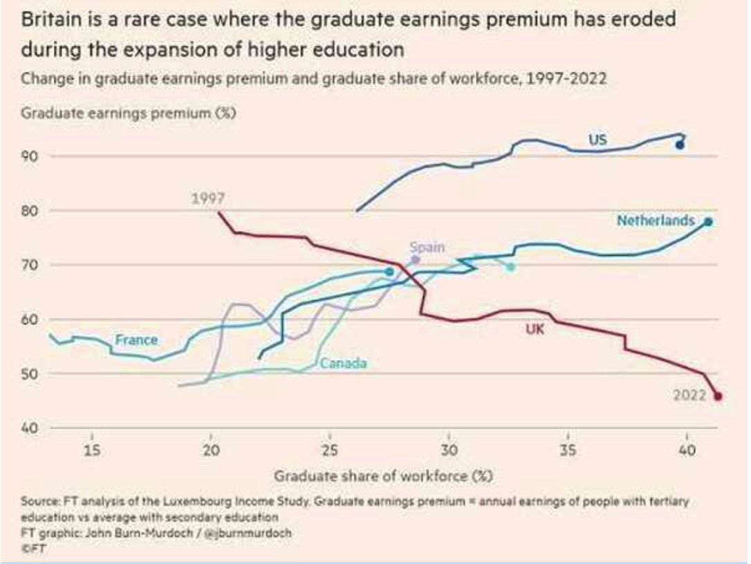 FT did a piece in mid Feb asking why only the UK amongst our peers is not able to provide a graduate premium for youngsters