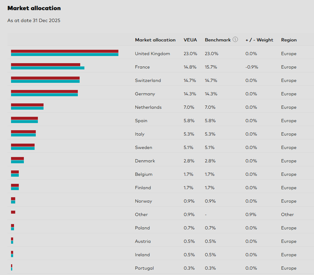 I chose VEUA as its pretty heavy on UK equities, but also has a decent amount of exposure to othet European countries:
