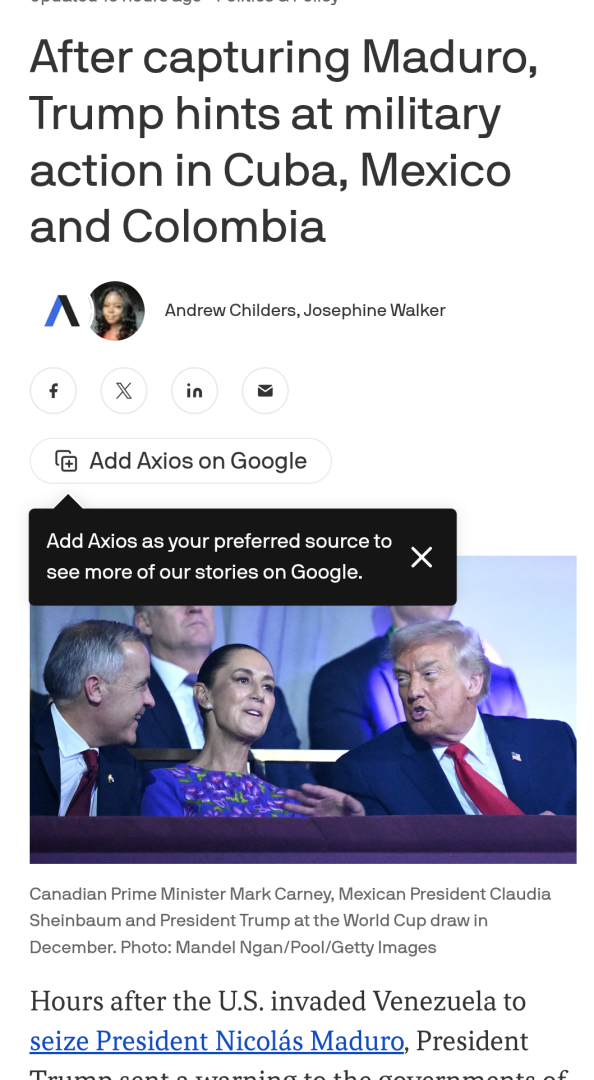 Its very early days yet but what's interesting ( but maybe not surprising) is that the Americans dont seem to want to change the regime, both Machado (the Nobel winner) and Gonzales (the opposition leader currently holed up in Spain) have been left hanging and Trump seems happy to leave Maduro's repressive regime in place with his VP nominally in charge (as long as she toes the line)