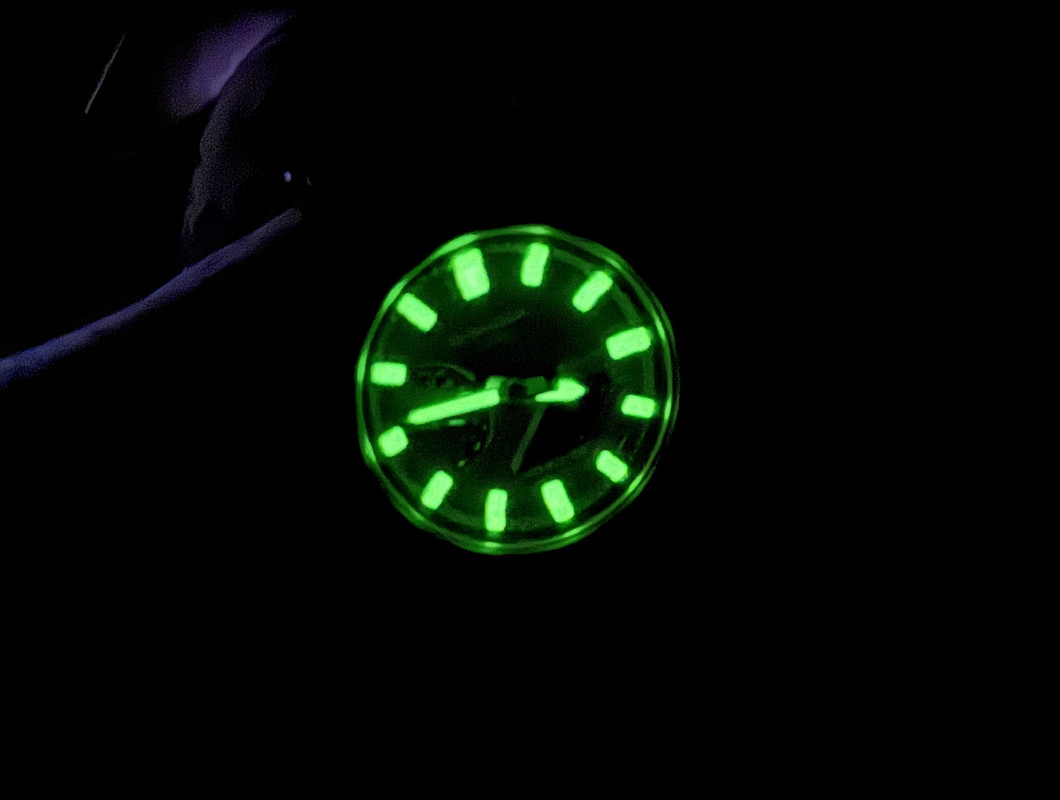 It’s a fairly simple, if fiddly process, you need to use the oiler pin to mix the stuff up, then pick up small amounts and apply to the markers, which isn’t like just brushing it on; (there are YouTube videos to show you how to do it). I’m starting to suffer from arthritis in my thumb joints, which is making such processes increasingly difficult, sadly, but once I had a decent amount of lume on the markers and let it set overnight, I opened up the watch, took the module out and swapped the marker ring over and put it all back together.