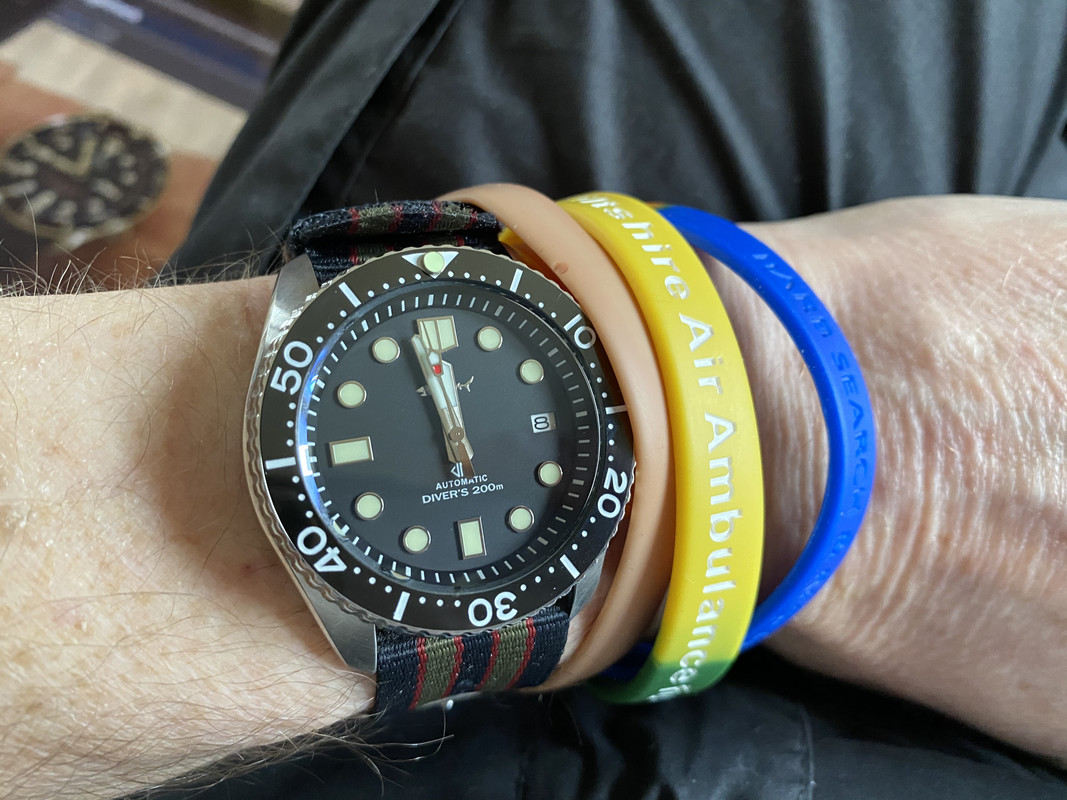 Not sure if I posted a photo of my Heimdallr SKX007/MM300 homage with the vintage Bond NATO strap, but it doesn’t look over-large on my very skinny wrist, and the single-pass thin nylon lets it sit close to my wrist as well. I absolutely love it to bits, the only amendment I’m thinking of making is a coin-edge bezel with full lumed ceramic insert.