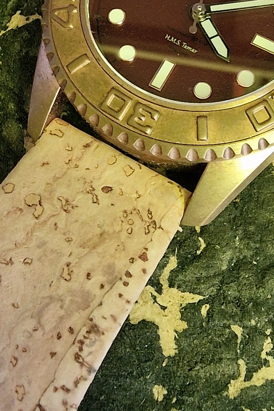 Cork strap anyone? Very light and comfortable as a material. Nice marble effect on this one acquired from the bay at 15 quid for standard buckle and strap tho' much more can be paid if desired