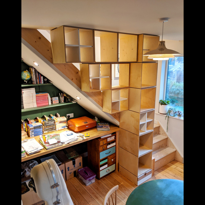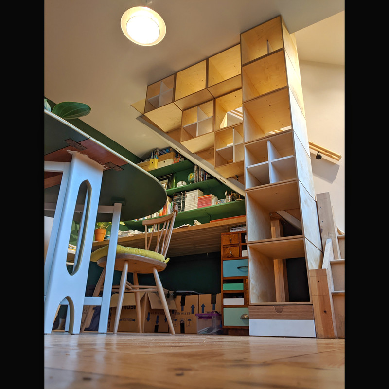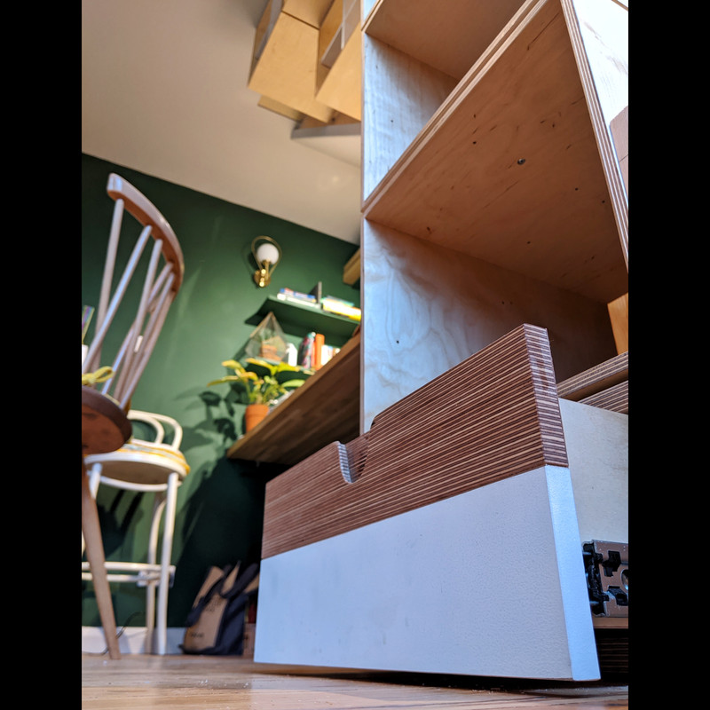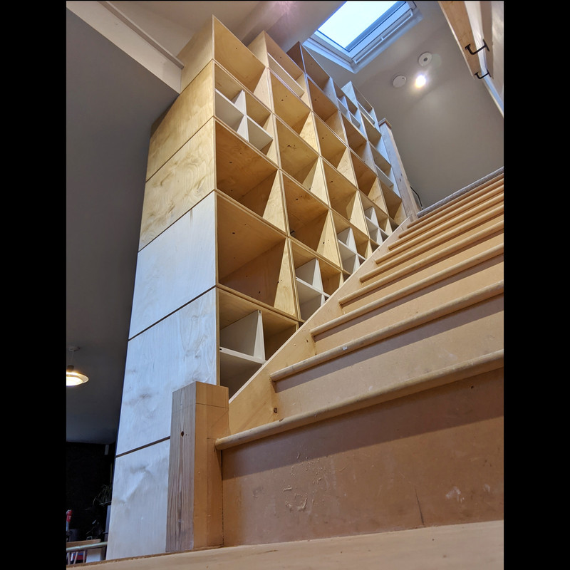 I made a shit load of birch plywood boxes, stacked them up to the roof up someone's stairs.