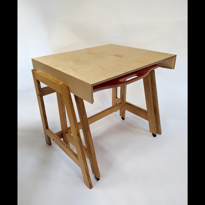 hardly skilled, but I needed to raise my monitors and after a few weeks on a stack of books I laminated some floorboard offcuts and cut them down to make risers.