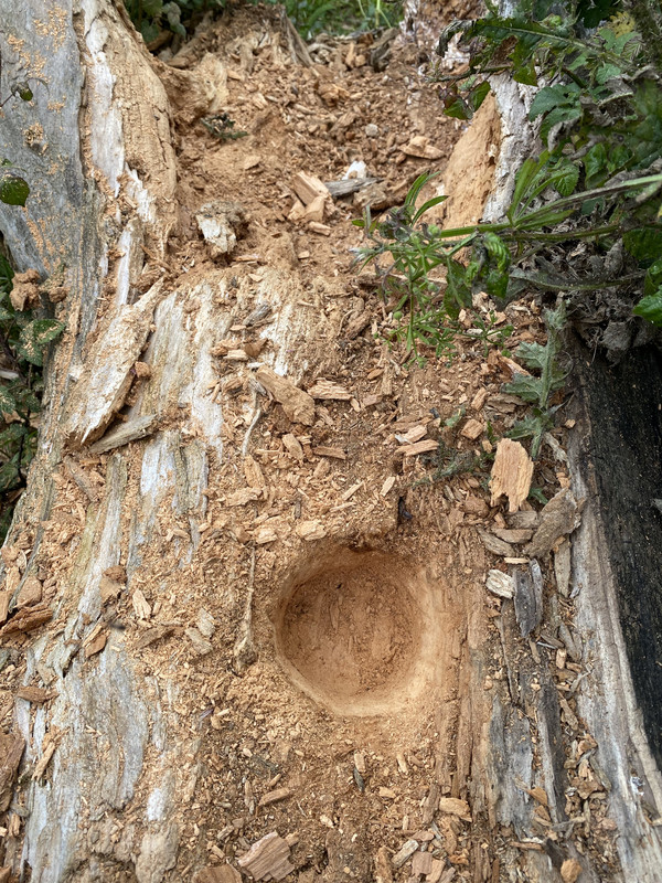 The wood is very soft, five minutes with my Opinel pocket knife, and a convenient place to put my bottle was had. 😎