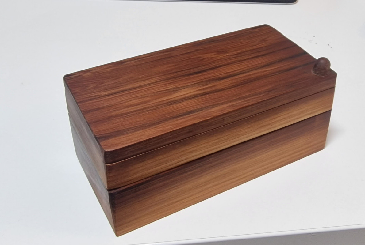I found a nice piece of wood in the garage while moving stuff around so made this but realised this afternoon that I don't have any felt to line the drawers, the shops are shut tomorrow and no-one needs any more presents right now so i thought I would post the pictures in the current state incase I stick it on a shelf somewhere and never actually finish it.