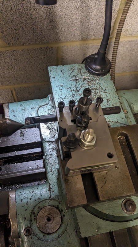 A stud to mount a quick change tool post. Not the most exciting thing but now I don't have to mess around with shims to set tool height every time I change tools.