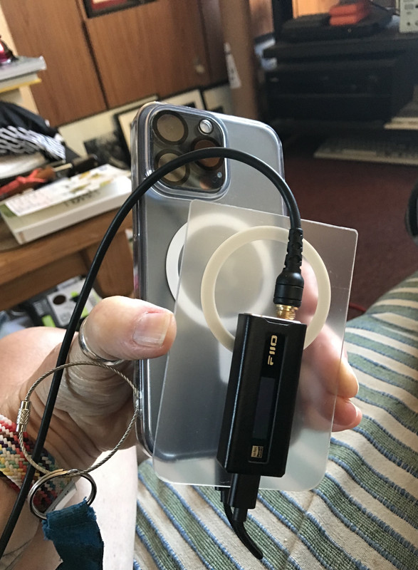 I use a Fiio DAC with my headphones on my phone, attaching it to the back of the phone with heavy-duty Velcro, but it’s not very stable. Then I had a bit of a lightbulb moment. My phone has MagSafe built in, so I bought a couple of Ringke MagSafe cases, and cut the bottom out of one of them and attached the DAC to it with No More Nails adhesive tape - works like a charm!