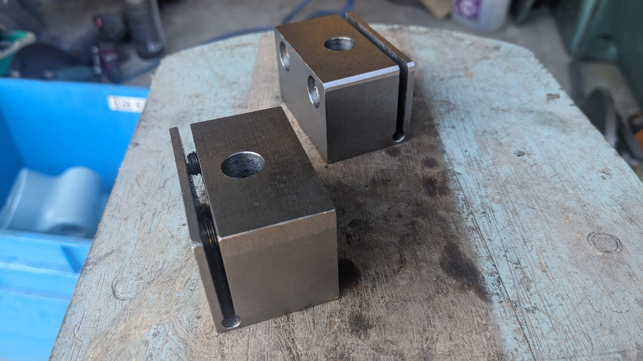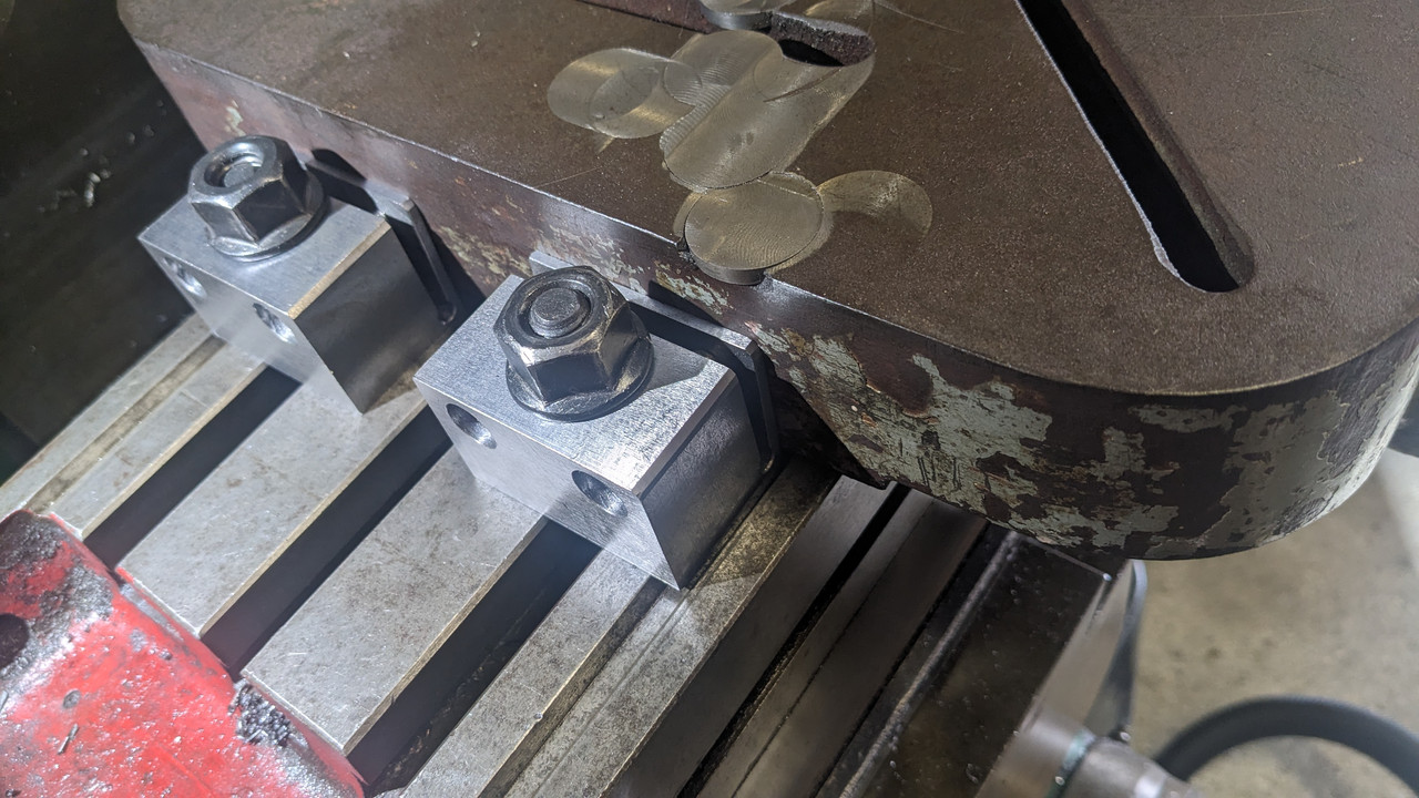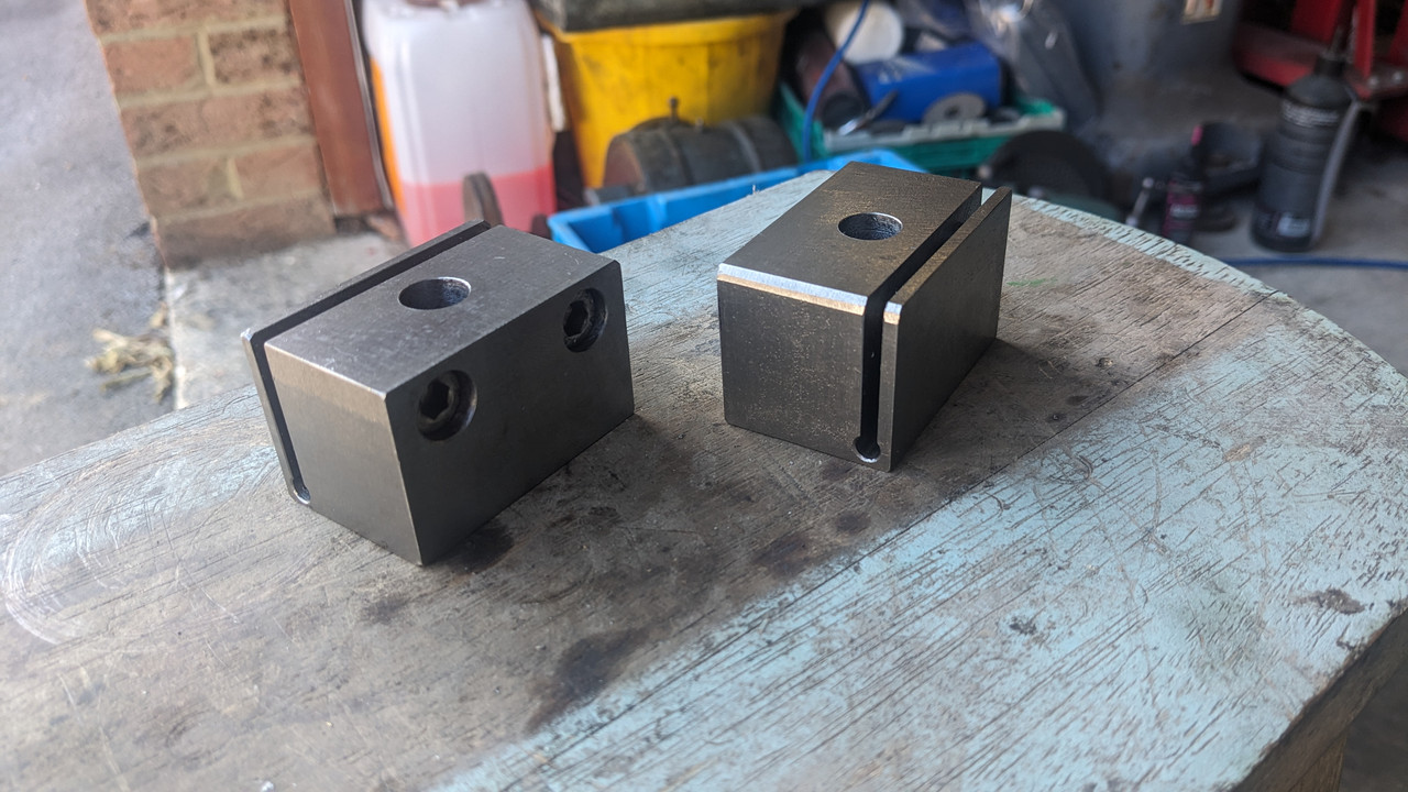 I finally found a correct table for my pillar drill. It had a whole load of holes drilled in it which I filled but then had the problem of how to re-surface the top. All my clamps clamp on the top which is no use so I made a couple of side clamps so I could machine the table.