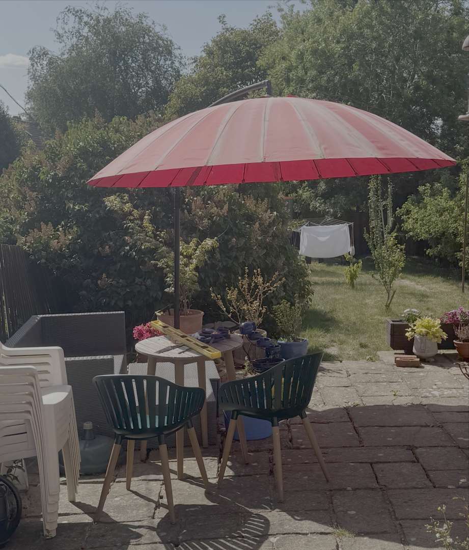 The cord on the patio parasol broke a week ago. £4 of 4mm yachting cord and an hour of my time and it's all fixed.
